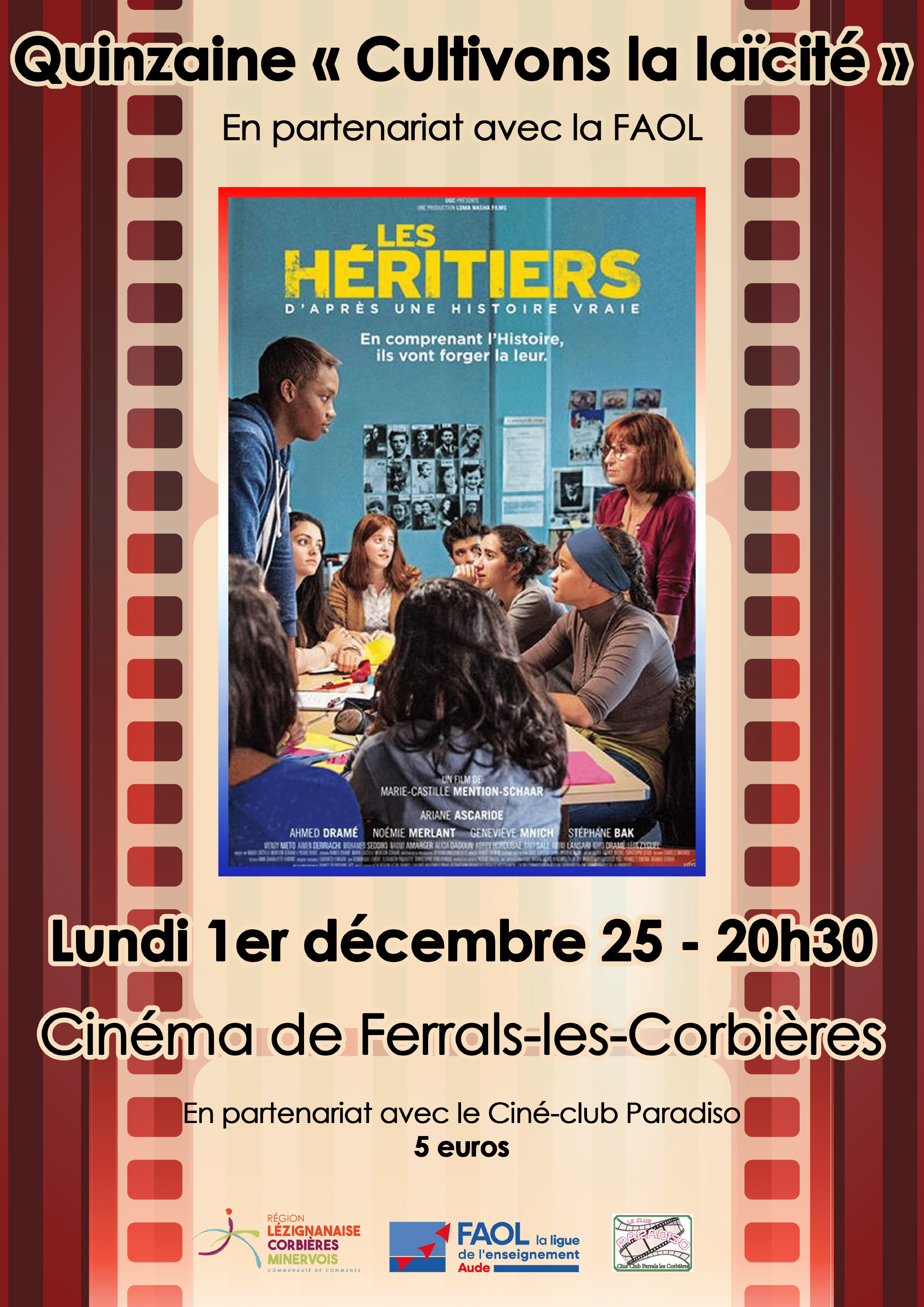 Découvrez la seconde séance de "Cultivons la laïcité" en partenariat avec la FAOL ; "Les Héritiers" réalisé par Marie-Castille Mention-Schaar, à partir de 5 euros ! En partenariat avec le Ciné-Club Paradiso.