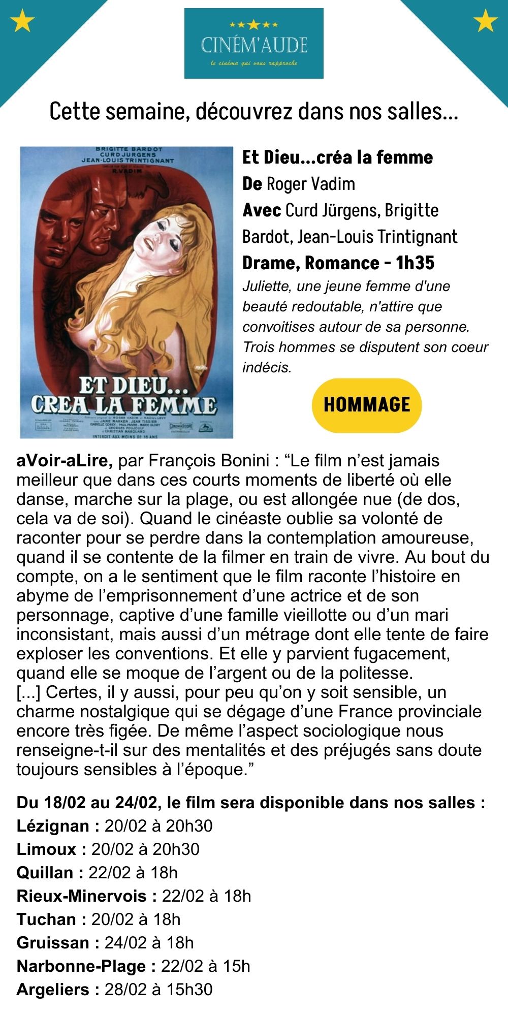 Pour la semaine du 18/02 au 24/02, (re)découvrez "Et Dieu...créa la femme", le classique de Roger Vadim, avec Brigitte Bardot :